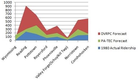 - DVRPC is projecting 3,300 riders in the first year of service on the R6 Wyomissing passenger rail line, which only