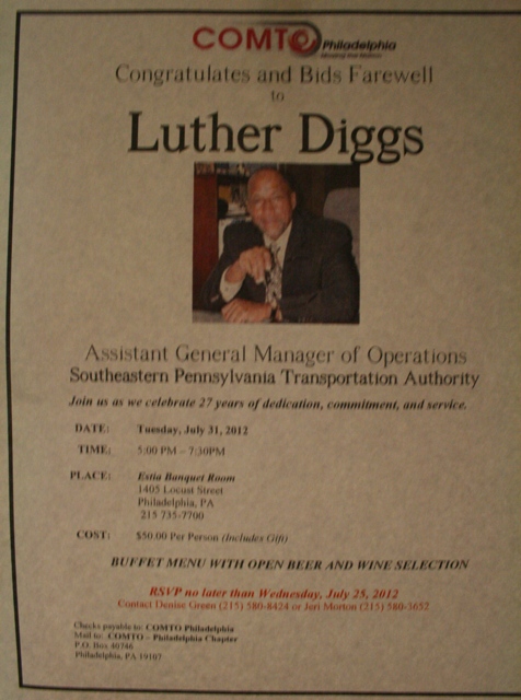 Luther Diggs, SEPTA's Assistant General Manager for operations is stepping down effective July 31, 2012. Mr. Diggs career at SEPTA started out as