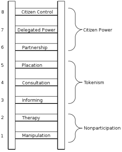 Recently, public participation at DVRPC has come under fire. Even worse, this organization, PA-TEC, has come under fire for asking questions about recent modifications to the federally mandated Public Participation Process at DVRPC, where changes made in February 2011 resulted in less public input than existed before. On Wednesday June 15, the DVRPC's Regional Citizens Committee (RCC) will be asked to vote on a resolution to recertify DVRPC as the region's M.P.O. Out of the 60+ members, only 9 are permitted to vote, who were pre-selected by a closed door committee that does not take meeting minutes, nor have any documentation as to how these 9 members were selected to represent the collective RCC. Where does that place public input on the ladder of citizen participation in the greater Philadelphia region? Read the article on Citizen Participation in Regional Planning |