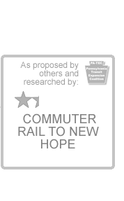 The following is a shortlist of alternatives for re-use of the former Reading Railroad New Hope Branch. PA-TEC currently supports maintaining current use of the railroad north of Warminster as a freight and tourist railroad, as operated by the New Hope & Ivyland Railroad. PA-TEC does support a short extension of service to the former NADC navy base where parking exists to meet the latent demand not served by the existing Warminster station.